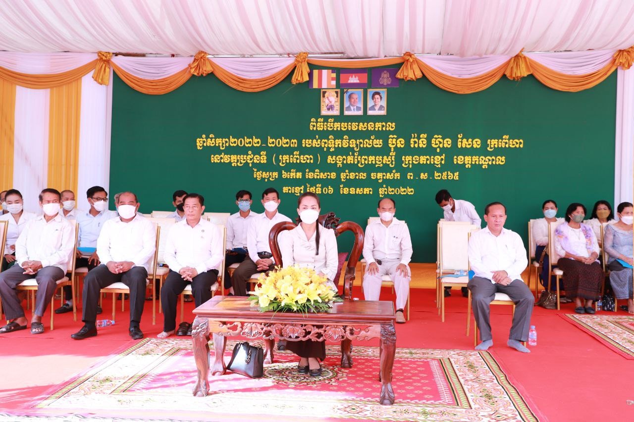 ខេត្តកណ្ដាល៖ សម្ដេចព្រះឧត្តមមុនី ជា សំអាង សមាជិកថេរសភា ព្រះអគ្គារធិការង និងជាព្រះមេគណខេត្តកណ្ដាល នៅព្រឹកថ្ងៃទី៦ ខែឧសភា ឆ្នាំ២០២២នេះ បាននិមន្តជាអធិបតី ក្នុងពិធីបើកបវេសនកាល នៃពុទ្ធិកវិទ្យាល័យ ប៊ុន រ៉ានី ហ៊ុន សែន ក្រពើហា ស្ថិតនៅសង្កាត់ព្រែកឬស្សី ក្រុងតាខ្មៅ ក្នុងឆ្នាំសិក្សាថ្មី ២០២២-២០២៣ ដោយមានការអញ្ជើញចូលរួមផងដែរពីសំណាក់ លោកជំទាវ ហ៊ុន កុសនី អភិបាលរងខេត្ត តំណាងឯកឧត្តម គង់ សោភ័ណ្ឌ អភិបាល នៃគណៈអភិបាលខេត្តកណ្ដាល និងព្រះមន្ត្រីសង្ឃ ព្រះថេរានុថេរៈ លោកគ្រូ សមណសិស្សជាង ៤០០អង្គ-នាក់។